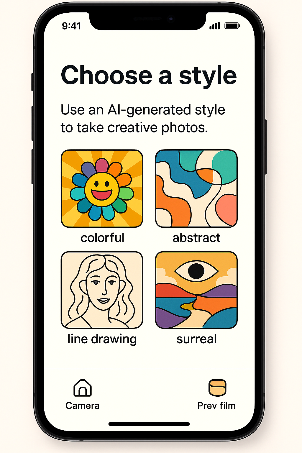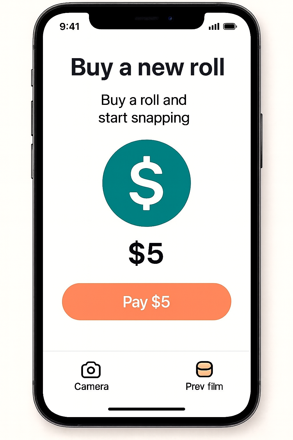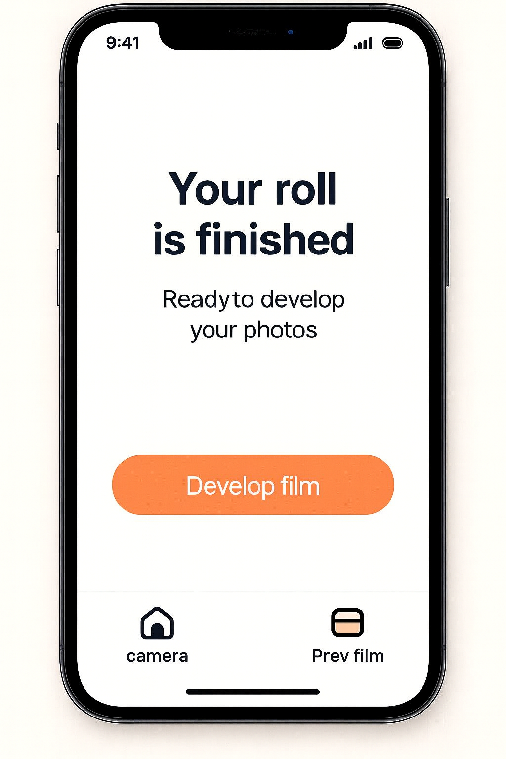 Users buy a virtual roll of film upfront, choose a style, and start shooting. With no previews or retakes, every shot counts. Once the roll is full, they βdevelopβ their photos and enjoy the nostalgic joy of discovering how each moment turned out.