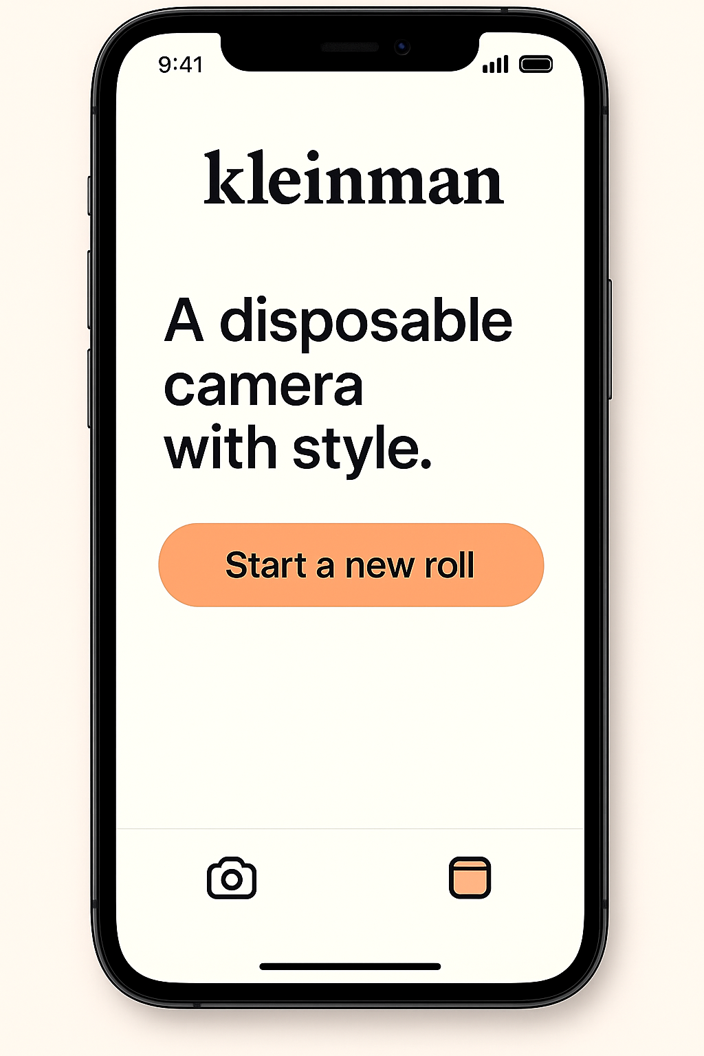 Kelinman is a disposable camera app that captures the magic of analog photography with a modern twist. It simulates the full film experience β from the intentionality of limited shots to the surprise and delight of development β all wrapped in elegant design and GenAI-powered visual styles.